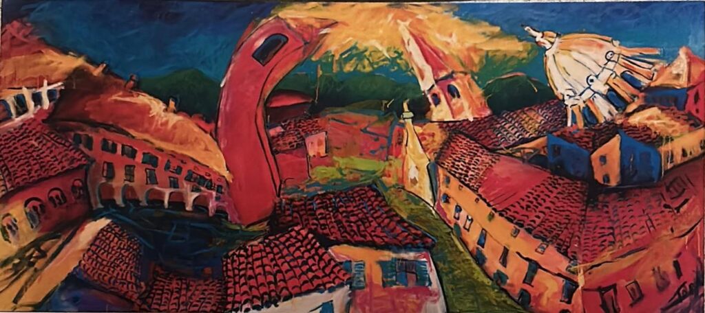 La pintura de Tupa no se parece a nada que se haya visto en las tendencias actuales del arte global. No busca complacer modas ni dialogar con caprichos efímeros. Existe por sí misma, como un canto que reclama ser escuchado. Sus colores, densos y vibrantes, parecen beber tanto de la tierra como del espíritu. Su figuración, a ratos cercana a lo naïf, esconde raíces profundas de tradición y pensamiento. Texturas impetuosas, impasto generoso, capas que parecen pensadas más para ser habitadas que observadas.